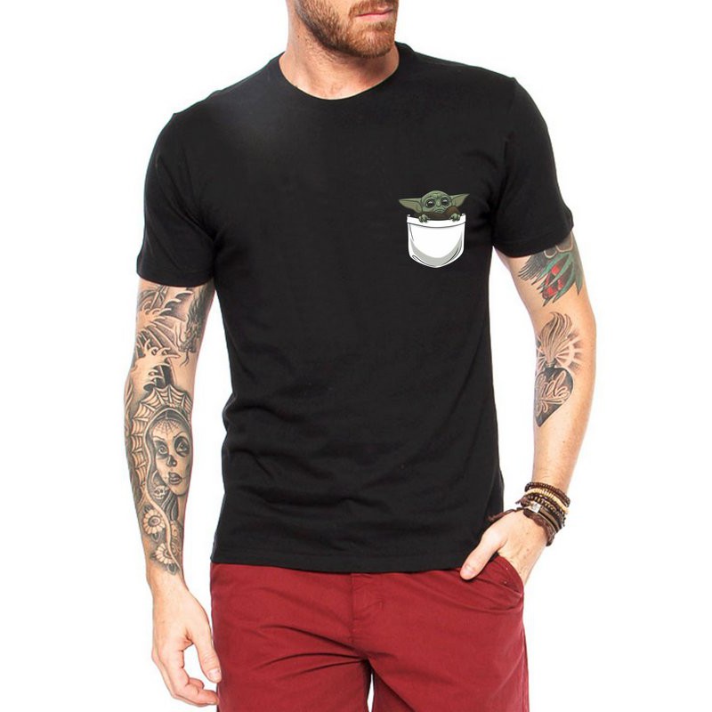 Camiseta Star Wars Baby Yoda No Bolso Série Masculina Mestre
