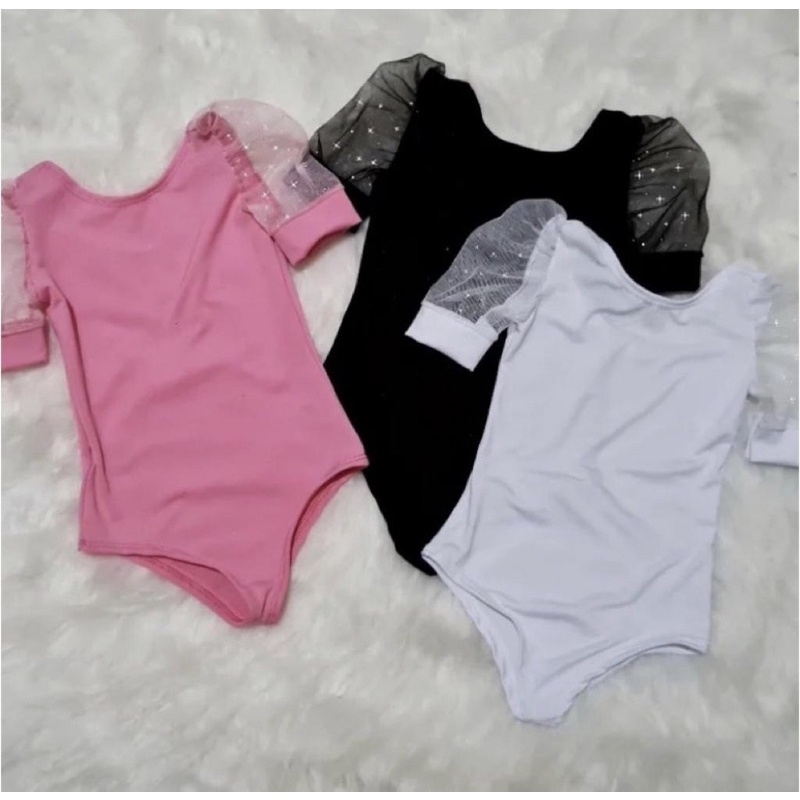 Body Bory Infantil Blusa Menina Criança Tule Poa Manga Longa/Manga Curto