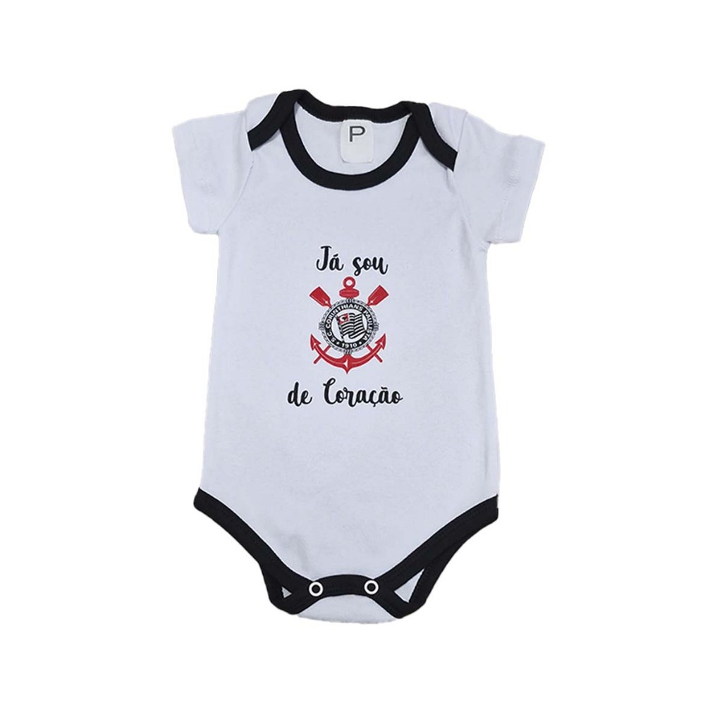 Body Bebe Corinthians Roupa Infantil Timão Branco 100% Algodão Premium De Times Manga Curta Não Licenciado Futebol