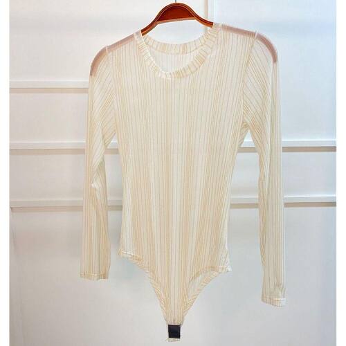 Body tule fio lurex manga longa moda blogueira feminina - Branco - M