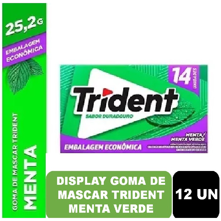 Display (c/ 12 un) Goma De Mascar Chiclete Trident Menta Verde Com 14 Unidades 25.2g