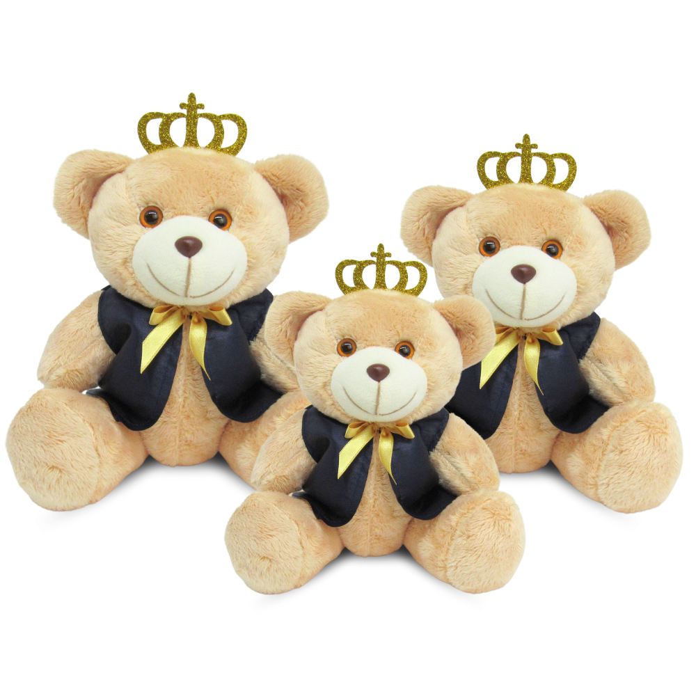 Trio Urso De Pelúcia Articulado Realeza Para Nicho (15cm 20cm 25cm)