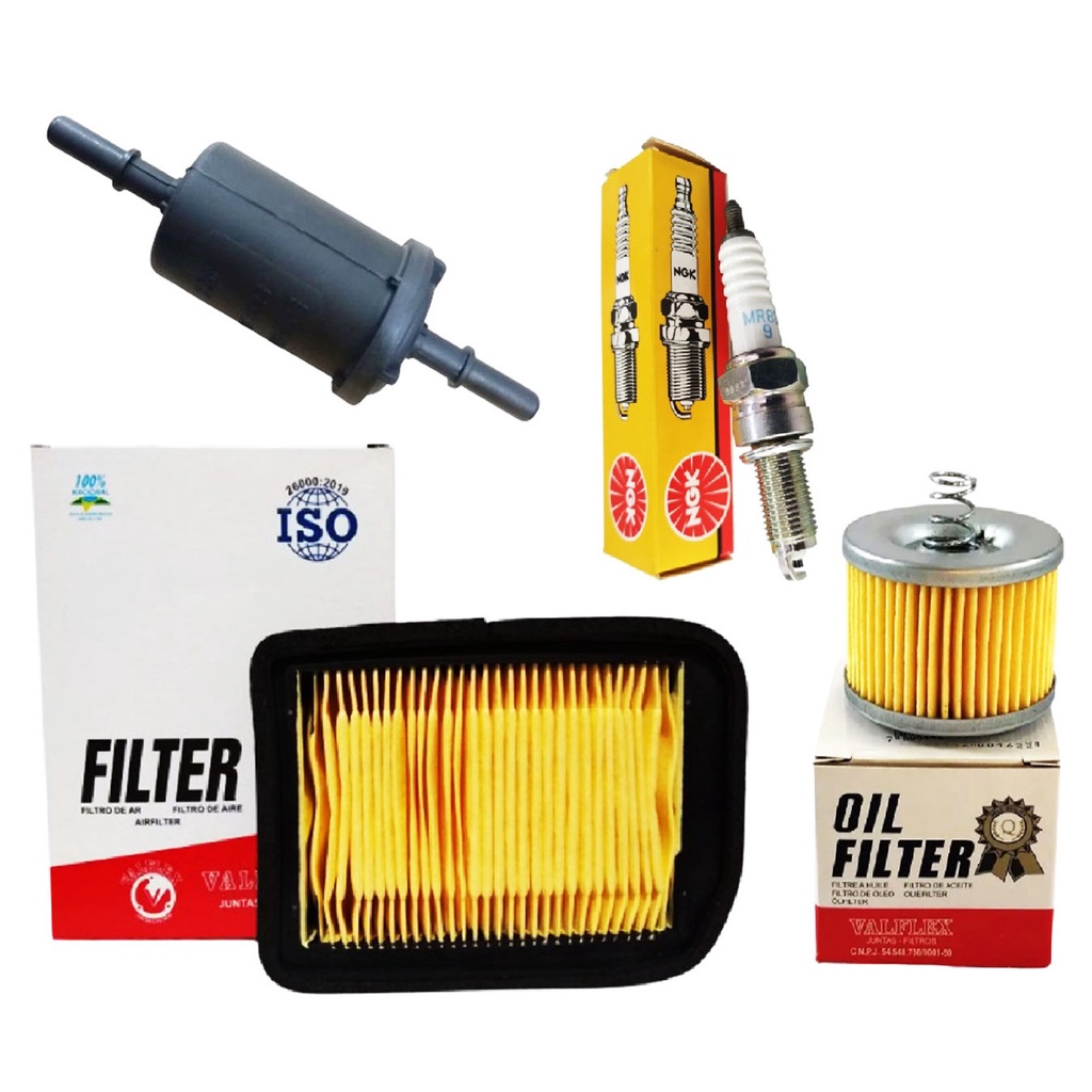 Kit de Filtros + Vela Ngk Factor 125 / Factor 150 / Fazer 150 / Crosser 150 (Filtro de Ar, FIltro de Óleo, Filtro de Combustível, Vela de Ignição)