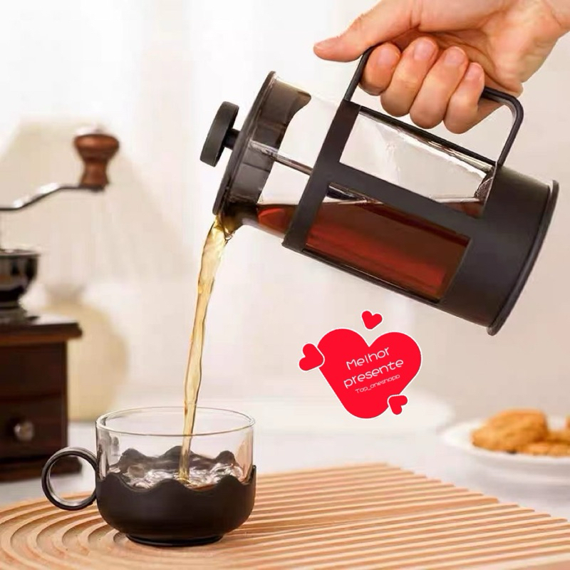 Prensa francesa Cafeteira Cremeira 300ml e 600ml para Café e Chá em Vidro