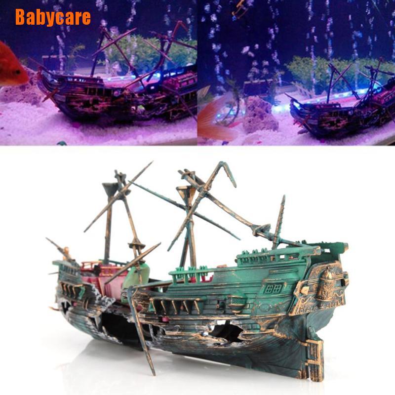 Babycare Grande Aquário Decoração Barco Navio De Ar Dividido Tanque De Peixes