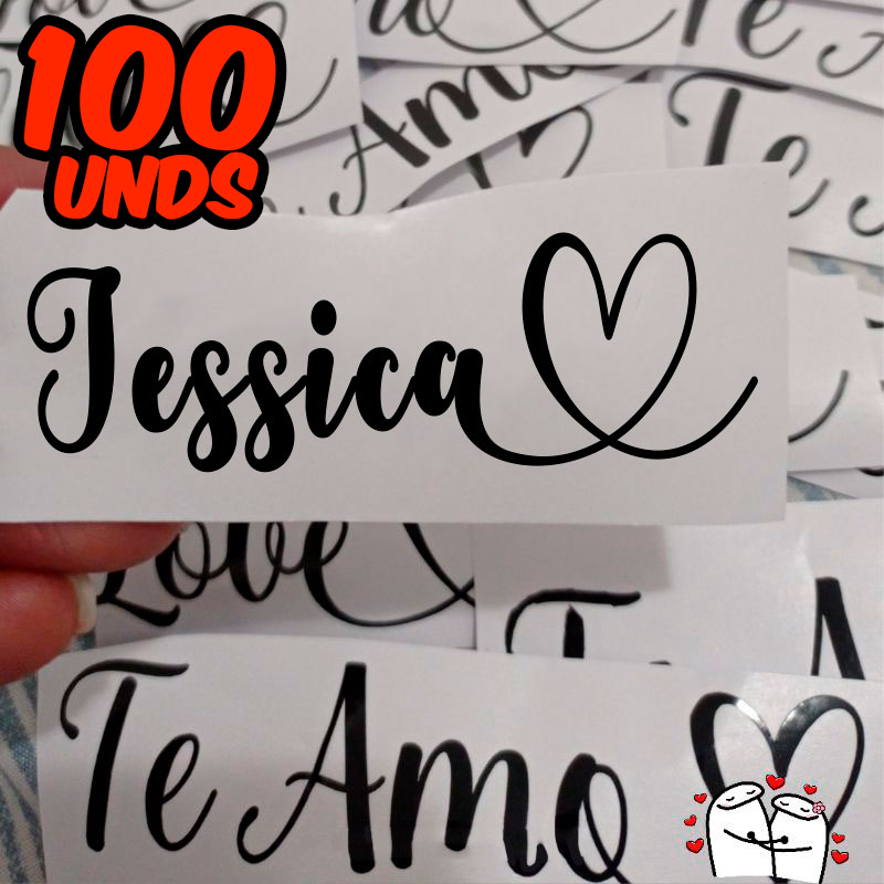 kit 100 Adesivos Vinil personalizado Com Coração para taças, Tuppeware, garrafinhas, cadernos, copos, Garrafas Stanley impermeável