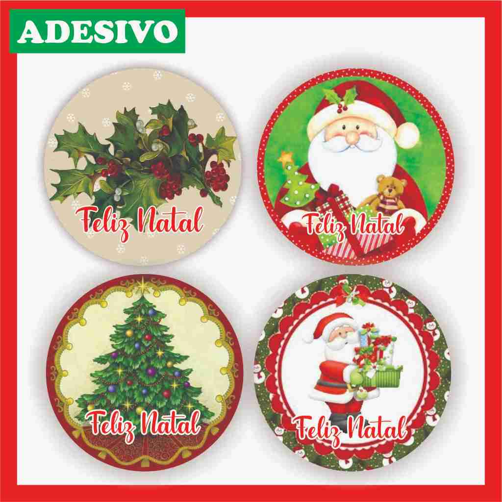 KIT 100 ADESIVOS NATAL COM FUNDO TRANSPARENTE