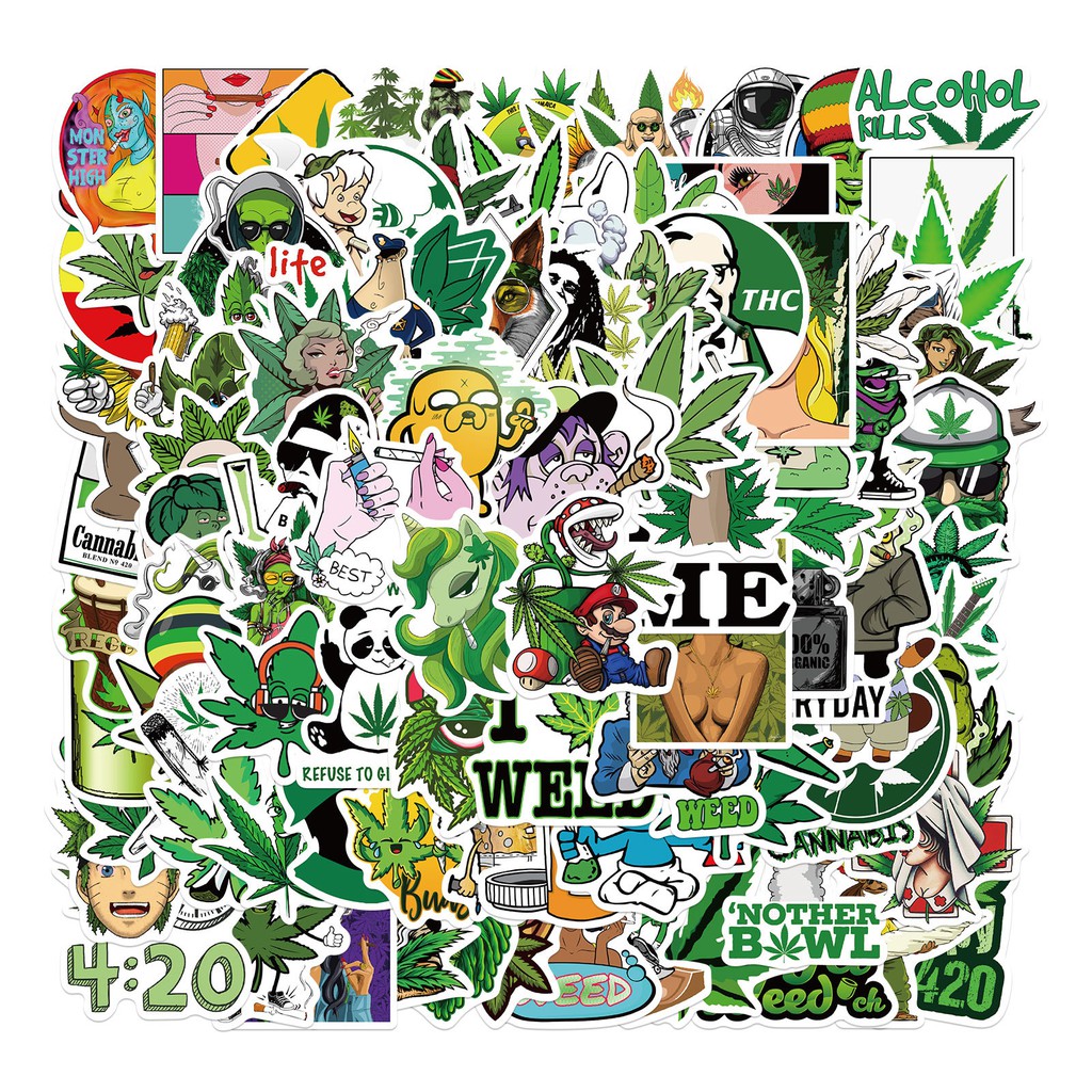 50 pcs Adesivos Criativos À Prova D'água Folha De Maconha Para Bagagem/Laptop/Telefone/Carro