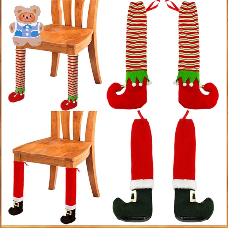 2 Pçs Natal Papai Noel/Idos Sapatos Cadeira De Mesa Pernas Pés Meia Manga Capa Protetor De Chão Mesas Perna Cobre Decora