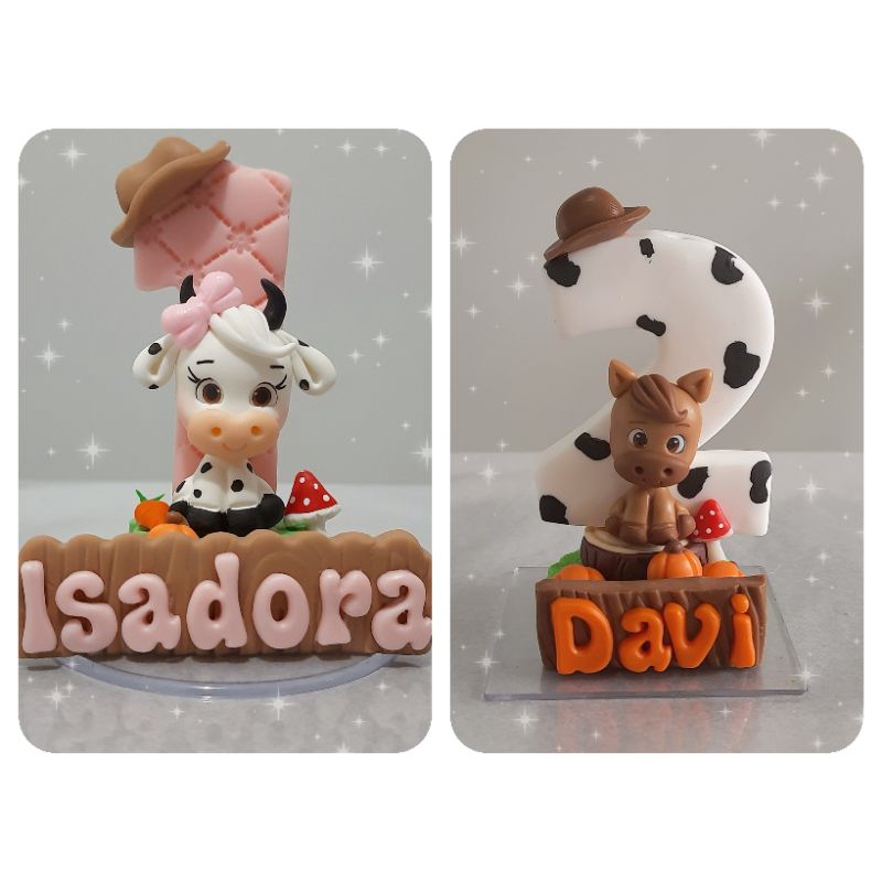 Vela de Aniversário/ Topo de Bolo em Biscuit tema Fazendinha / Tema de Festa Fazendinha