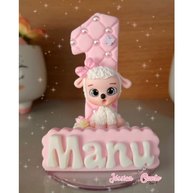 Vela Aniversário Biscuit Ovelhinha / Topo de Bolo/ Decoração Festa tema Ovelhinha