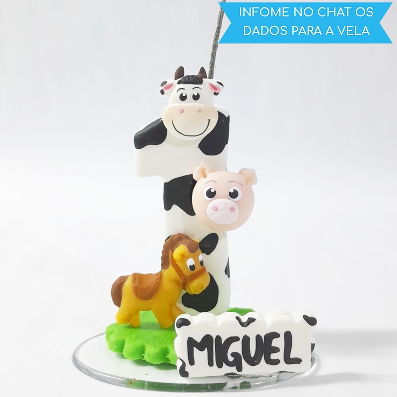 Vela Aniversário Biscuit / Topo de Bolo/ Decoração Festa tema Fazendinha