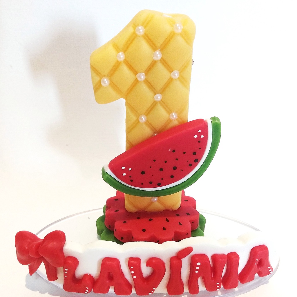 Vela de aniversário personalizada em biscuit do tema fazendinha com pavio magico, topo de bolo, vela