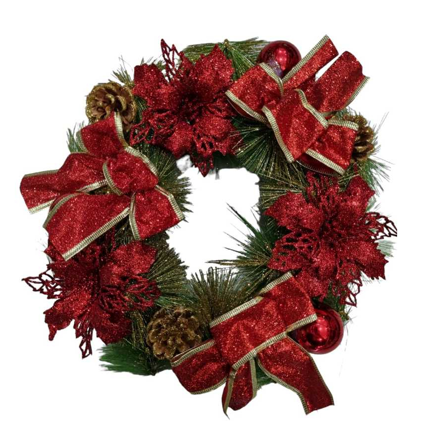 Guirlanda Decorada De Natal Luxo Reforçada - 27 Cm Diametro