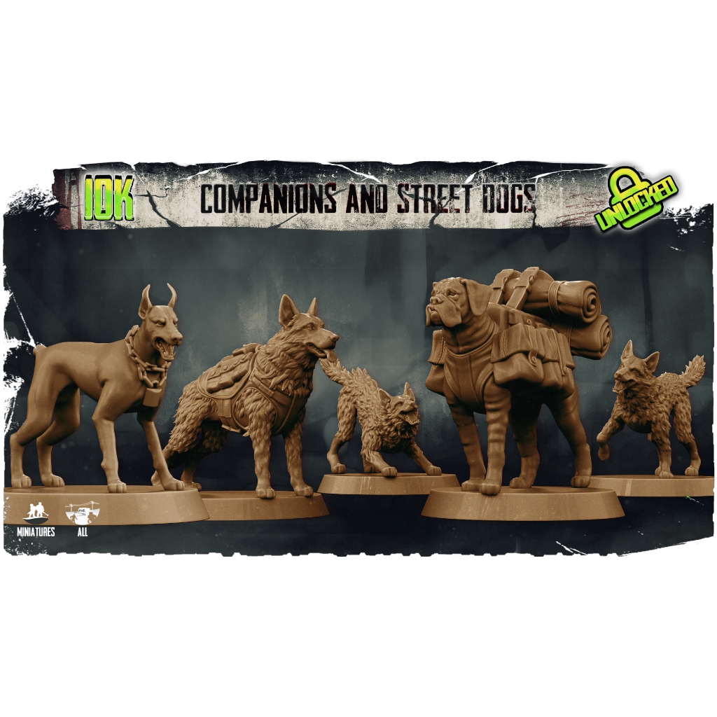 Kit Miniaturas Dog Companions and Street Dogs Apocalypse Dawn para Fallout Wasteland Warfare Zombicide Zona Alfa