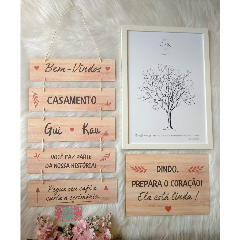 KIT COM QUADRO ASSINATURA ÁRVORE DAS DIGITAIS OU COM FOTO DO CASAL OU CASA DO UP PLACA DE CASAMENTO PLACA INDICATIVA SINALIZAÇÃO