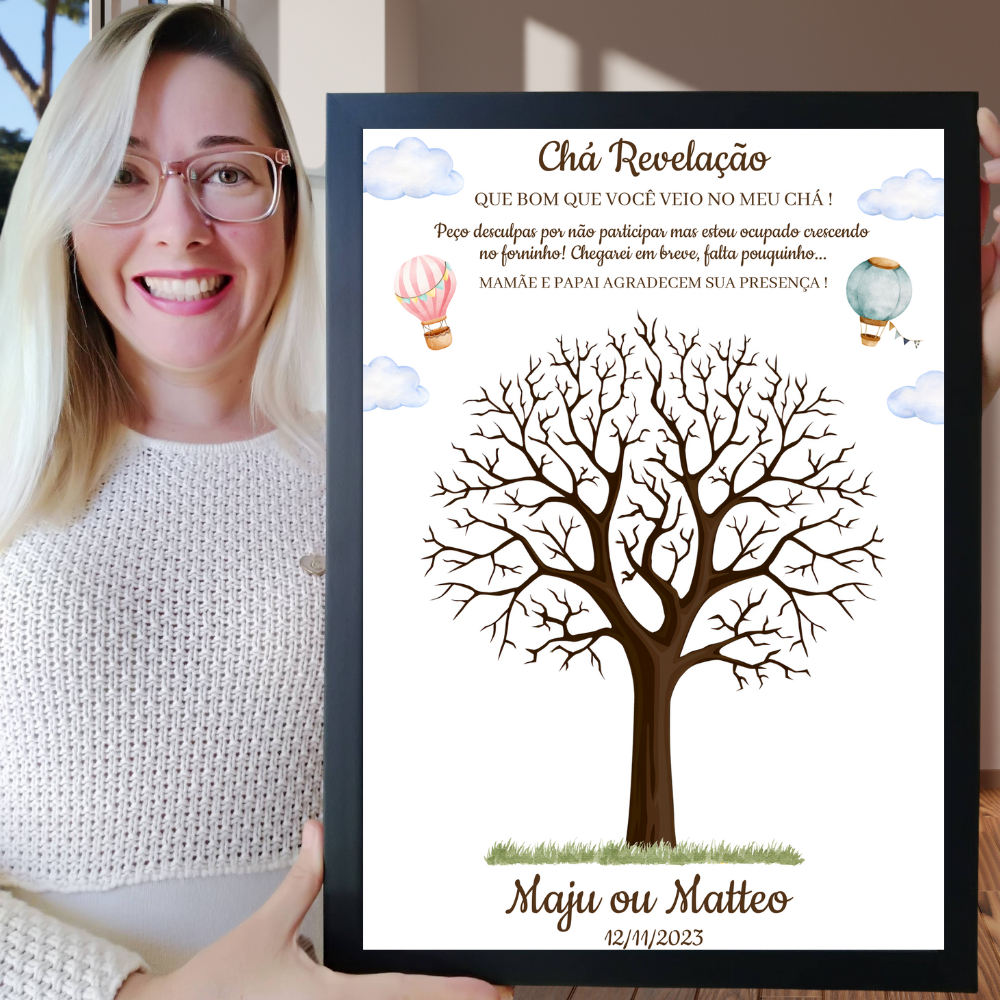 QUADRO ASSINATURA CHÁ REVELAÇÃO ÁRVORE DAS DIGITAIS BALÃO BALÕES