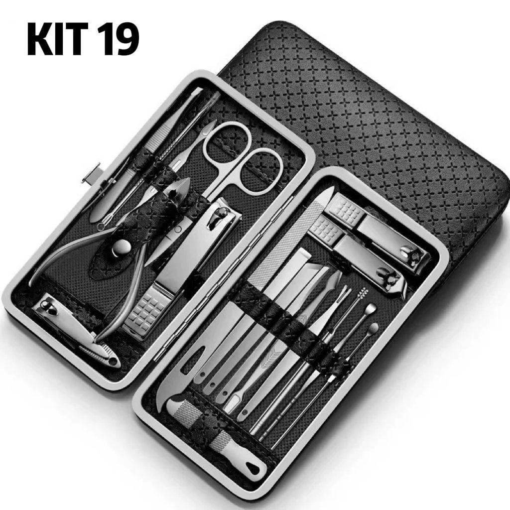 Kit 19 Cortador De Unha Manicure Portatil Estojo Pinca Tesoura C/Organizador de couro de luxo