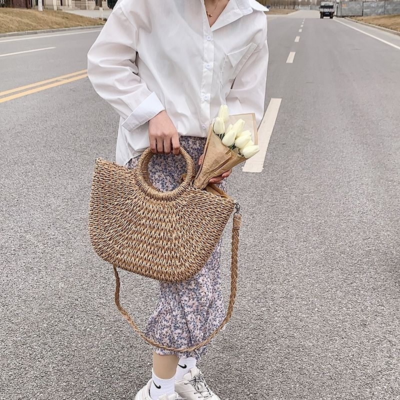 Bolsa de Palha feminina para Praia e Casual – Modelo Meia Lua com Alça Removível!