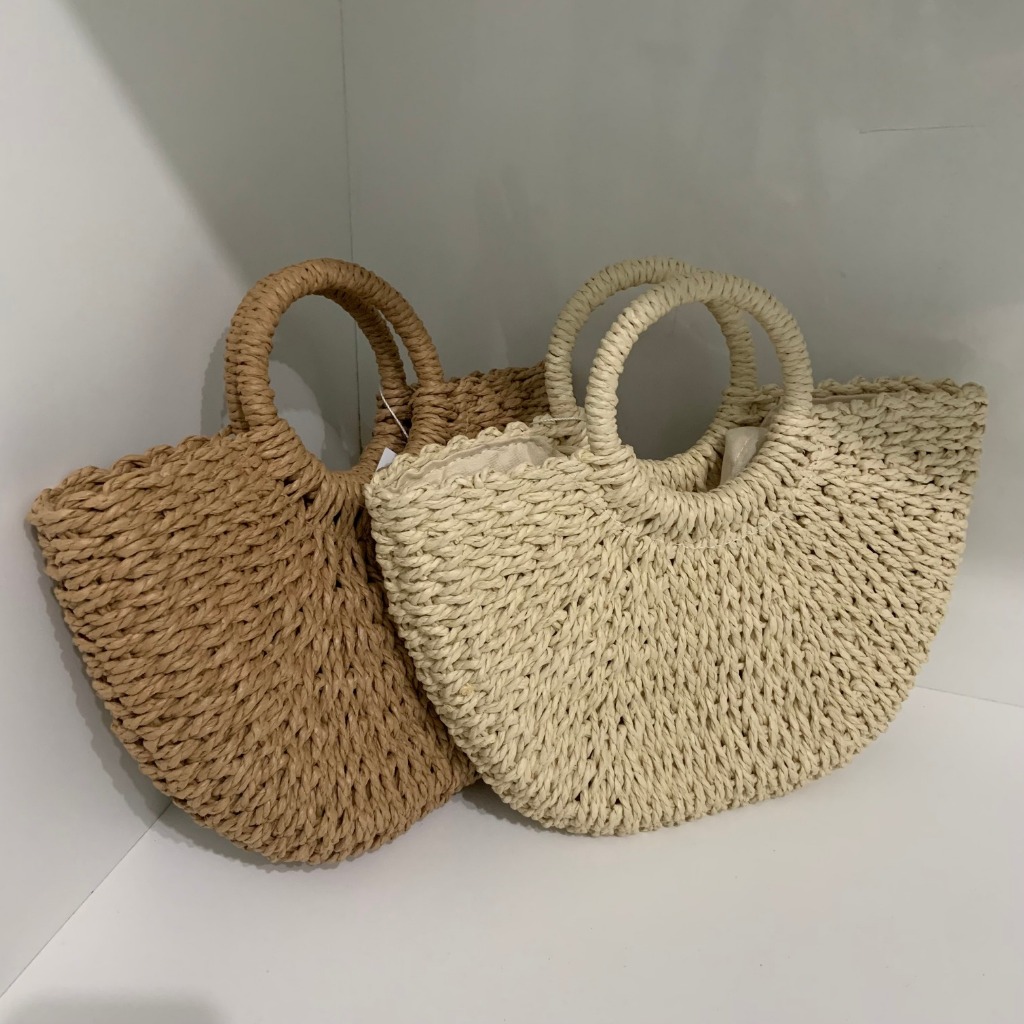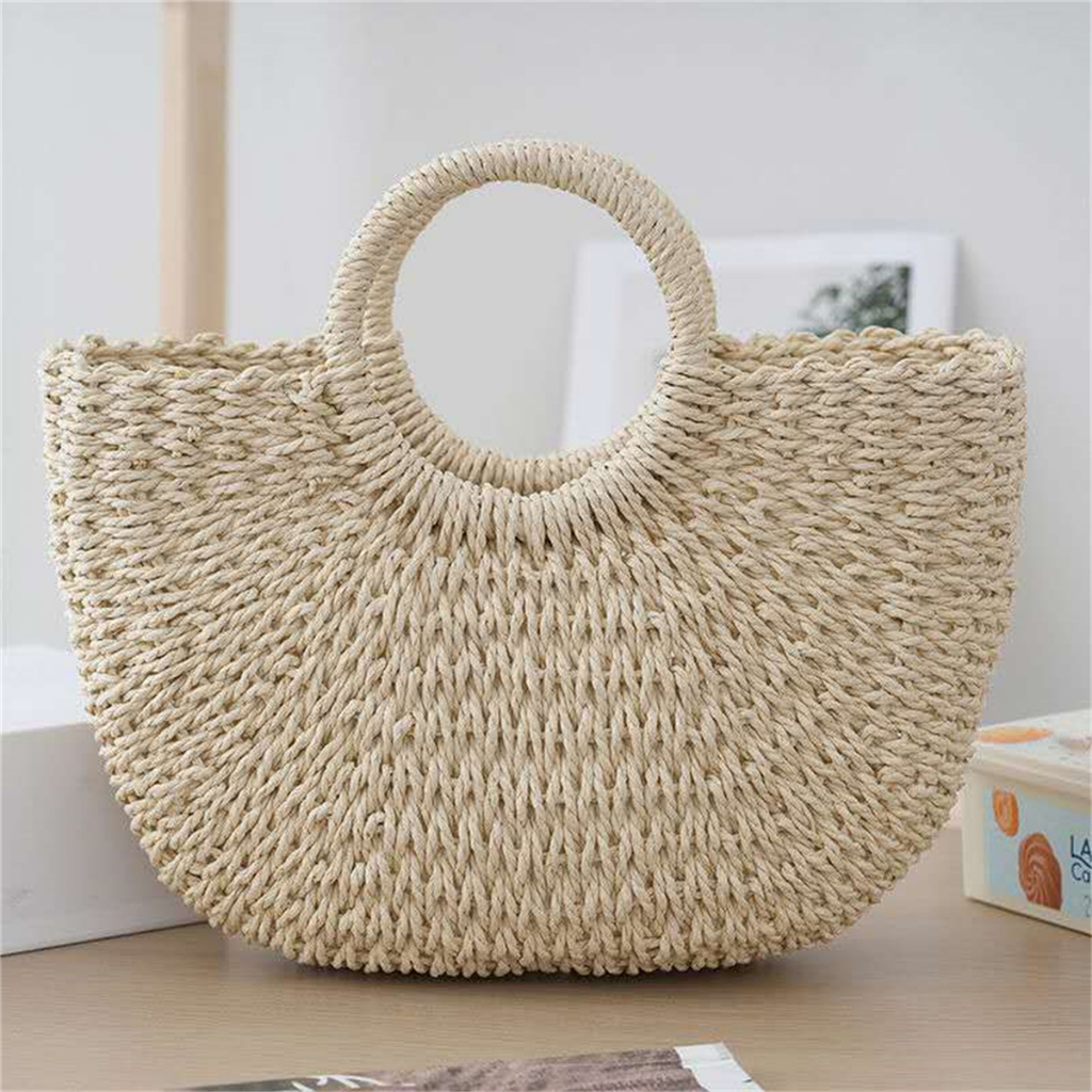 Bolsa de Praia Meia Lua Média Feminina Palha Sintética Com Alça de Mão CHANGTAI-11