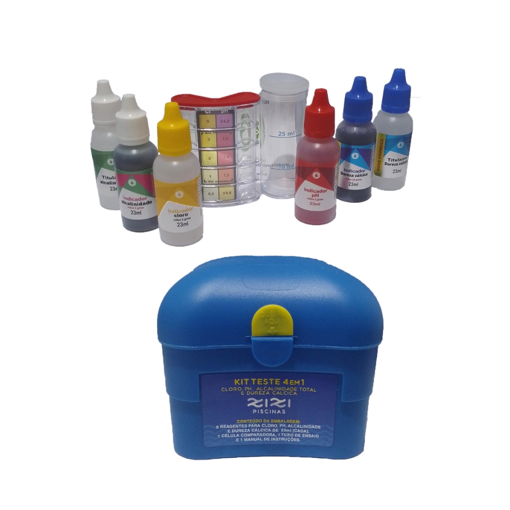 Kit Estojo De Teste 4 em 1 Para Piscina Medição Ph / Cloro / Alcalinidade e Dureza Total