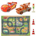 Pista Tapete com Carrinho Relâmpago Mcqueen e Mate + Acessórios