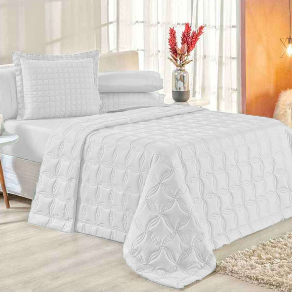 Kit Celestial 03 Peças Luxo Cobre Leito Colcha Quarto Casal Cama Box Casal Queen Micropercal 200 Fios Branco Noiva