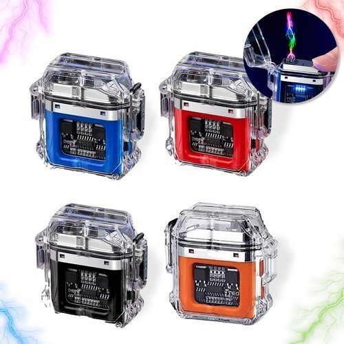 impermeável isqueiro elétrico recarregável usb, com lanterna, gadgets luxuosos, esqueiro de acampamento portatil, caixa transparente de isqueiro de plasma de arco duplo