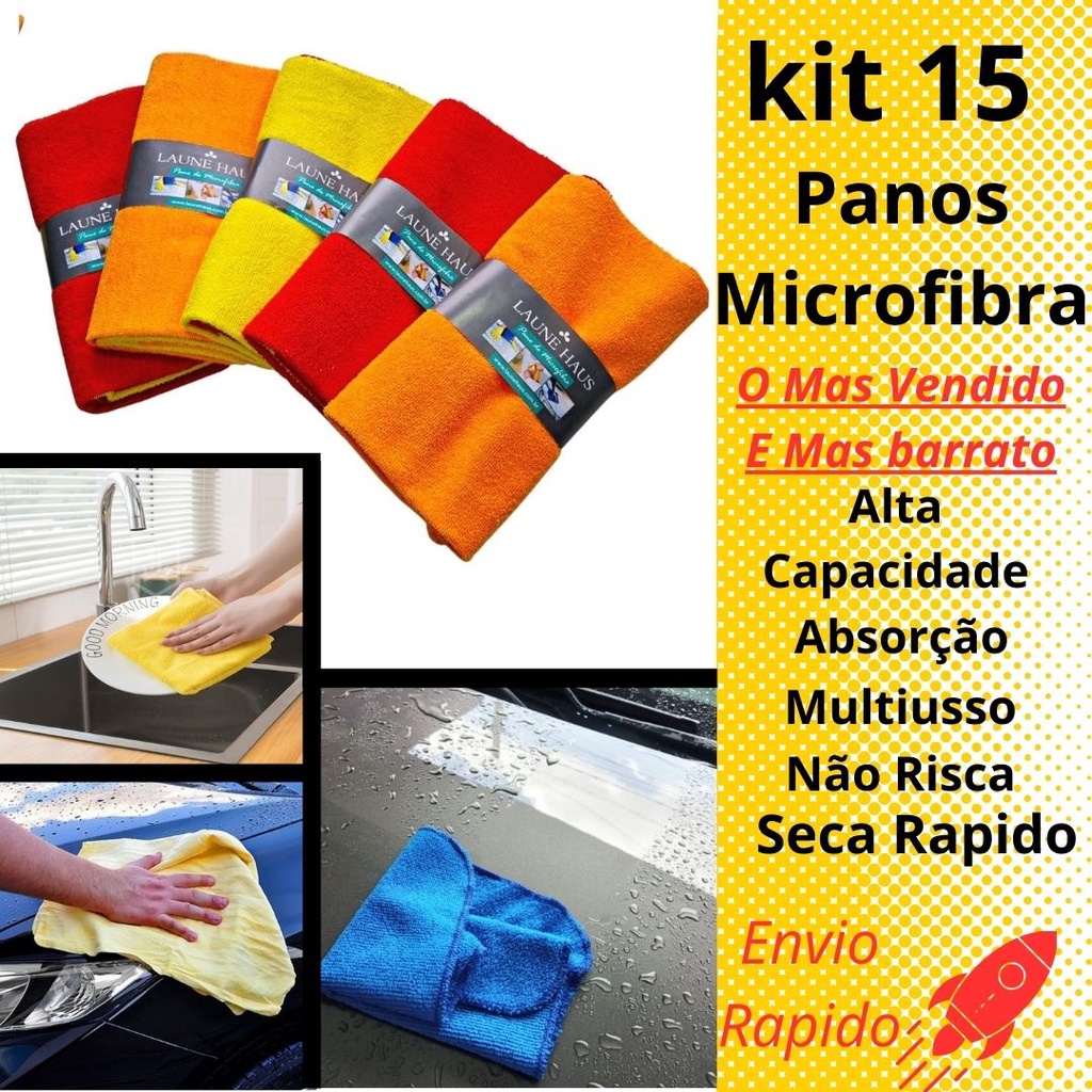 Panos de microfibra kit com 15 panos para limpeza geral - casa carro - alta absorção 30x30 cm