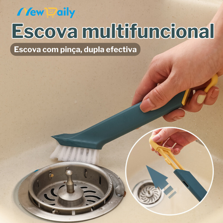 KIT 3 Escova de limpeza fina 2 em 1 pendurável com pinça, para limpar de pia de cozinha. BC-94