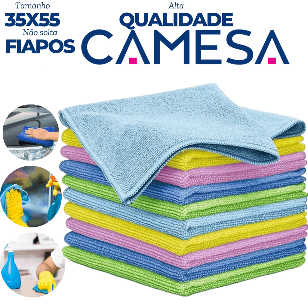 Kit 10 Panos De Limpeza Microfibra alta absorção Multiuso 30x30 para cozinha carro casa vidros