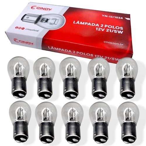 kit com 10 lâmpadas 2 polos 12v P21/5w
