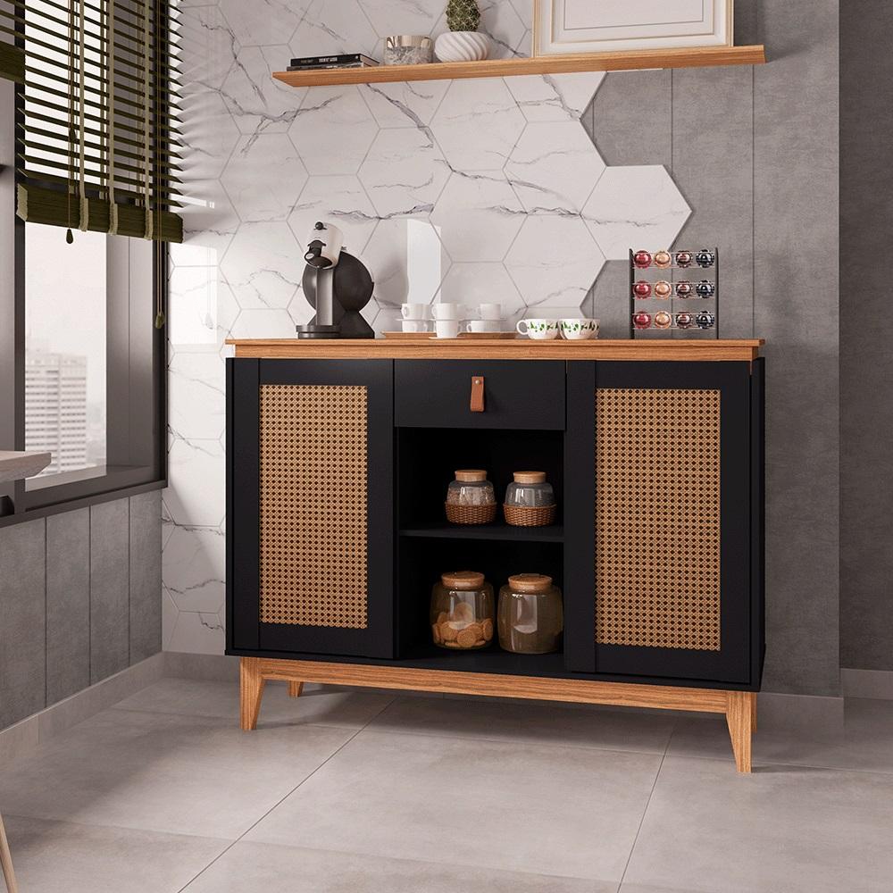 Aparador Buffet para Sala de Jantar 1,50M com 4 Portas e 2 Gavetas Ana Ype Preto New Ceval