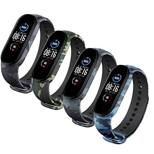 Kit com 4 pulseiras camufladas compatível com Mi Band 3 / 4 / 5 / 6 / 7 / 8 [Verde | Azul | Cinza | Cinza Pixel]