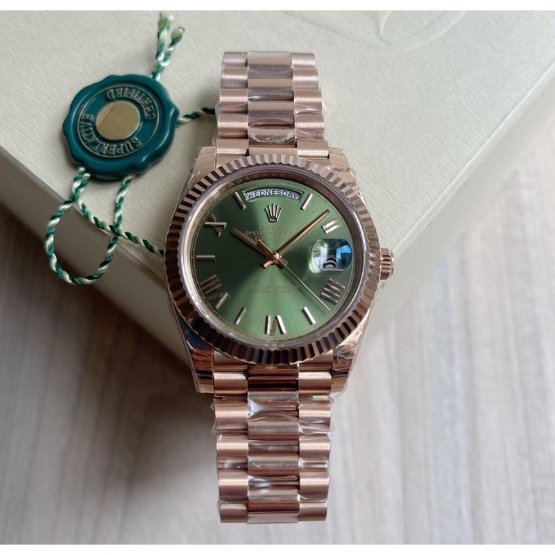 Relógio Masculino Automático Daydate Rose fundo verde vidro safira