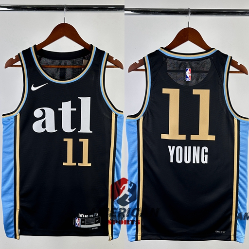 2023-24 City Camisa 2023NBA Atlanta Hawks 11 Trae Young Camiseta de Basquetebol Preto Jersey