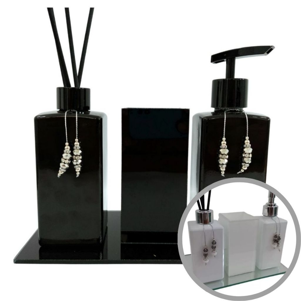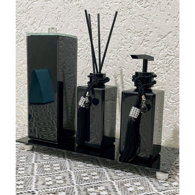 Kit Lavabo/Banheiro Vidro Preto Difusor De Ambiente Aromatizador Porta Escova
