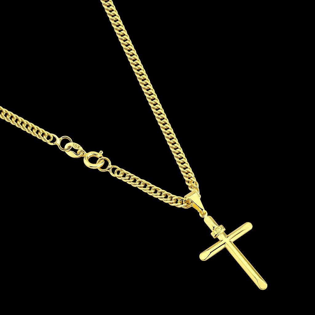 Corrente Veneziana + Pingente Cruz Palito Banhado a Prata 925 Cordão Masculino Correntinha com Crucifixo