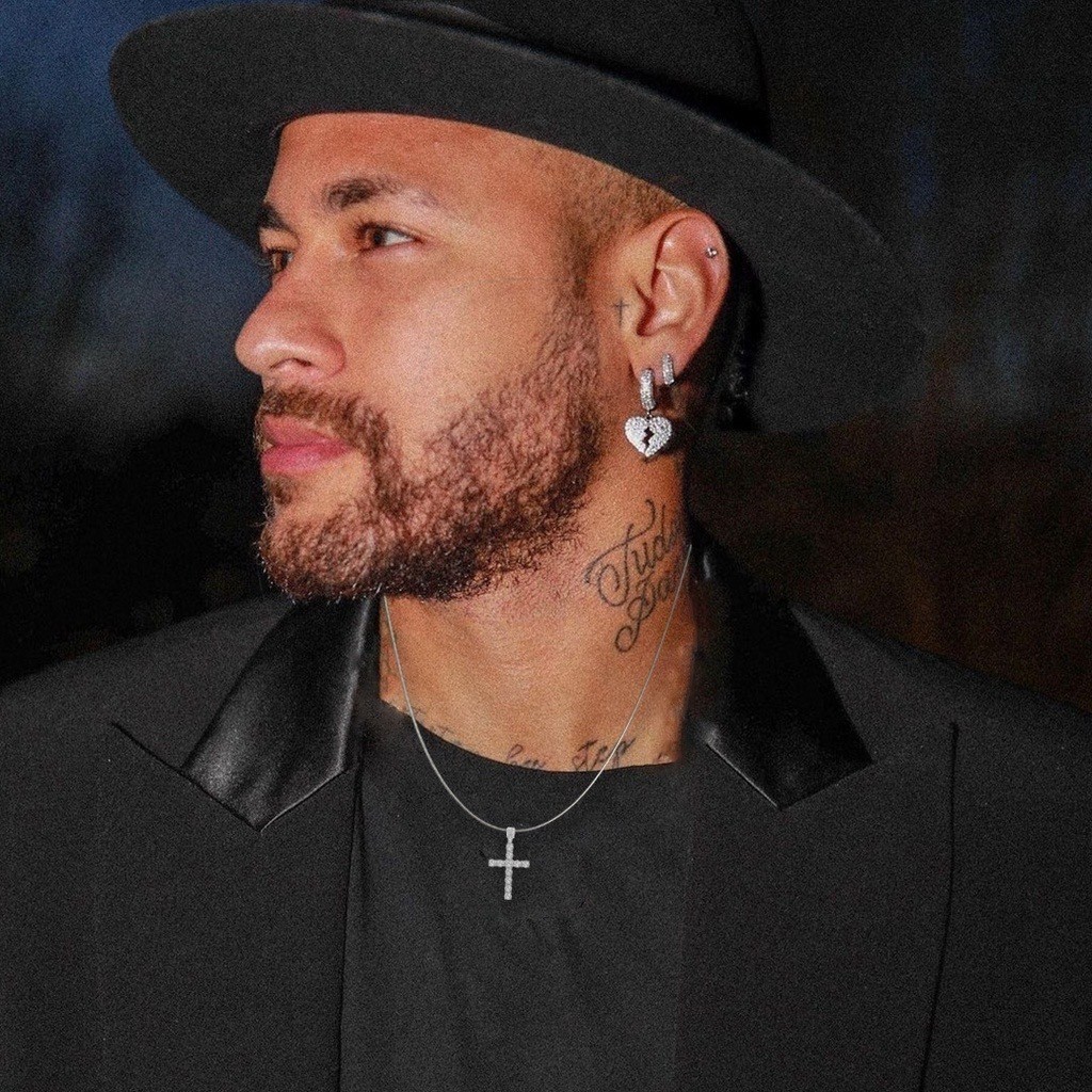Colar corrente cordão fino Neymar Jr com pingente ice de cruz cravejado Premium A++