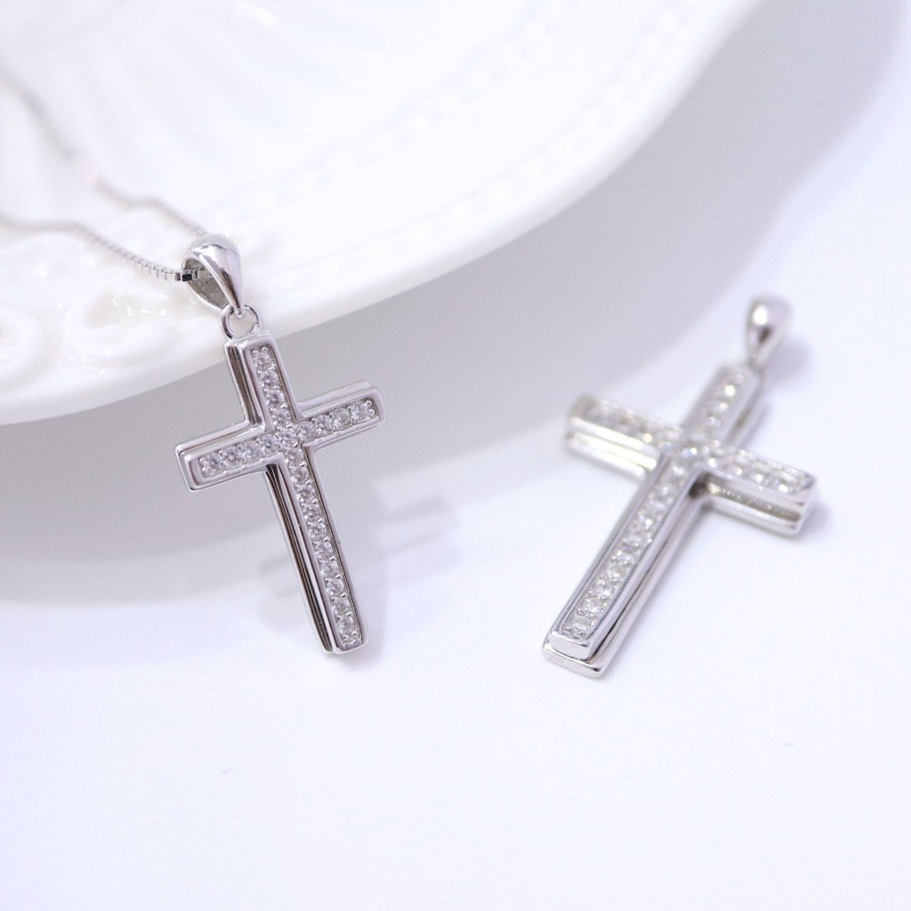 Colar em Banhado a prata 925 com pingente de cruz cravejado com zircônias cristal corrente veneziana V15