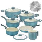Jogo de Panelas Antiaderente Casa Ambiente Genebra 7 Peças Revestimento Cerâmica Azul