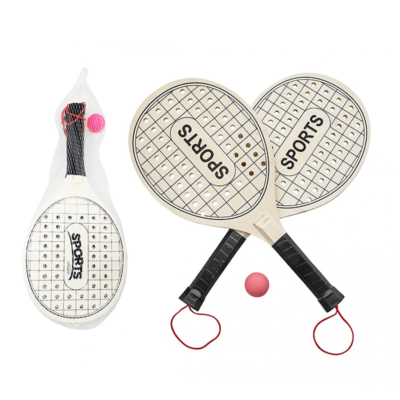 Kit Jogo Frescobol Beach Tennis Com 2 Raquetes de Madeira + Bolinha