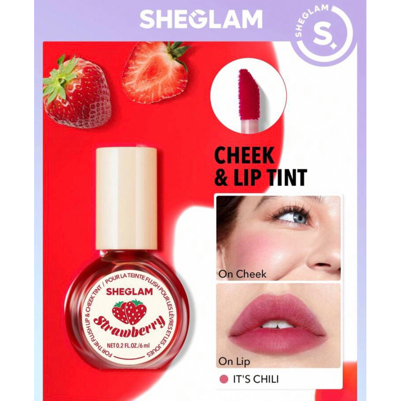 Lip Tint Sheglam Para Lábios e Bochechas Strawberry It’s Chili