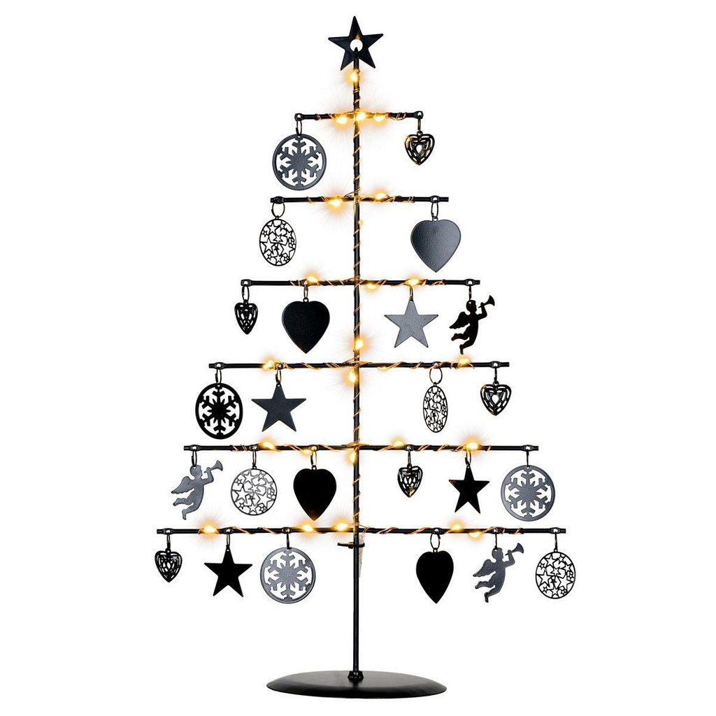 Arvore De Natal Metal Preto Enfeite Decorativo Com Luzes Led e Pendentes Pingentes 45cm Ref.1699
