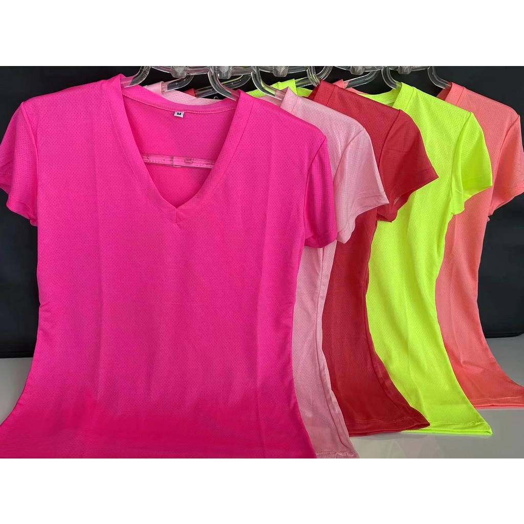 Camiseta Poliamida Furadinho Sem Elastano Baby Look Fitness Dry Fit Blusa Gola V Manga Curta