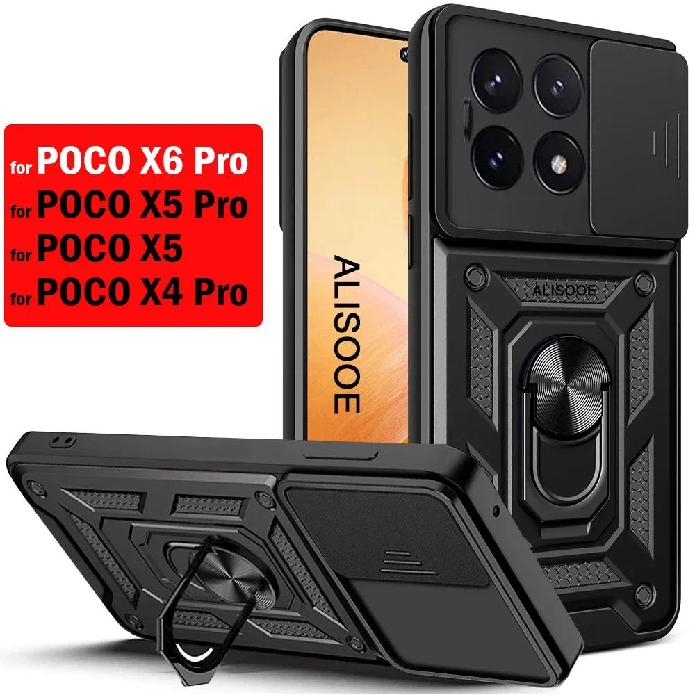Capa Do Suporte Da Armadura Para A Caixa POCO X6 Pro Xiaomi X5 X4 5G Lente Câmera Deslizante Fundas Telefone Anel