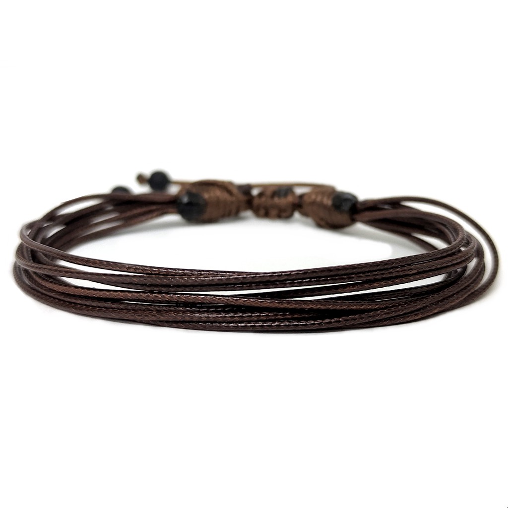 Pulseira masculina de couro e pedras preta marrom modelo em cordas
