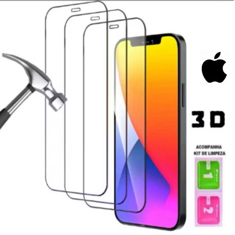 Película De Vidro 3D 9D Para Iphone 14 13 Pro / 12 / 11 / Xr / 8 / 7 / 6 Plus Antishock Pronta Entrega