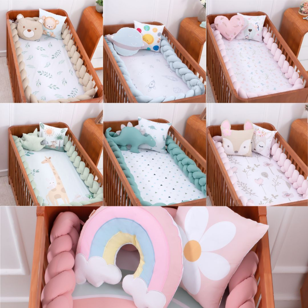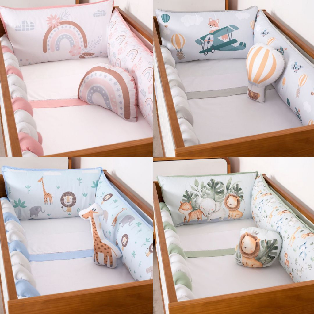 Kit Berço 7 Peças Protetor Enxoval Completo Varias Estampas Menino e Menina Algodão