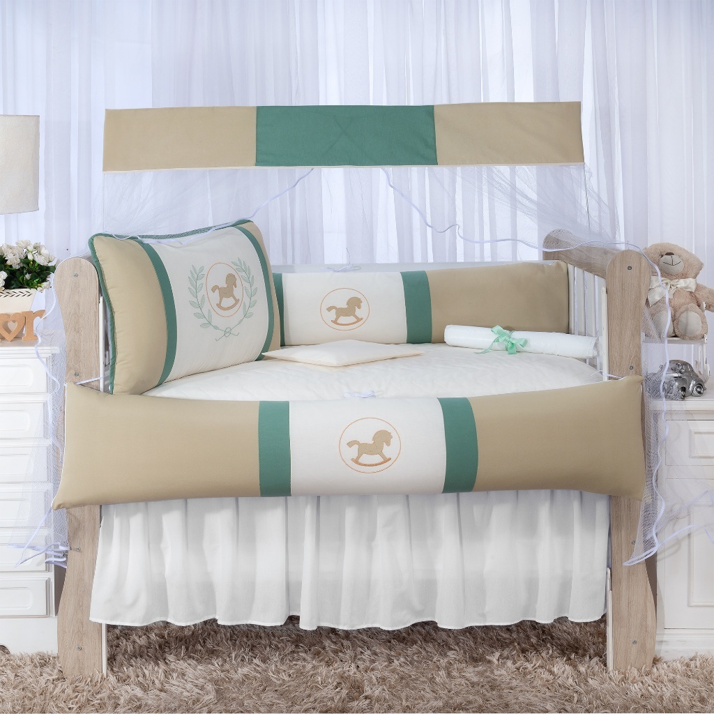 Kit Berço Trança Menino Completo Padrão Nacional E Americano 9 Peças Modelo Tranca Azul Verde Safari Bege Branco Neutro Nuvem Amor Protetor Lateral Berço para bebê Enxoval para berço - Promoção